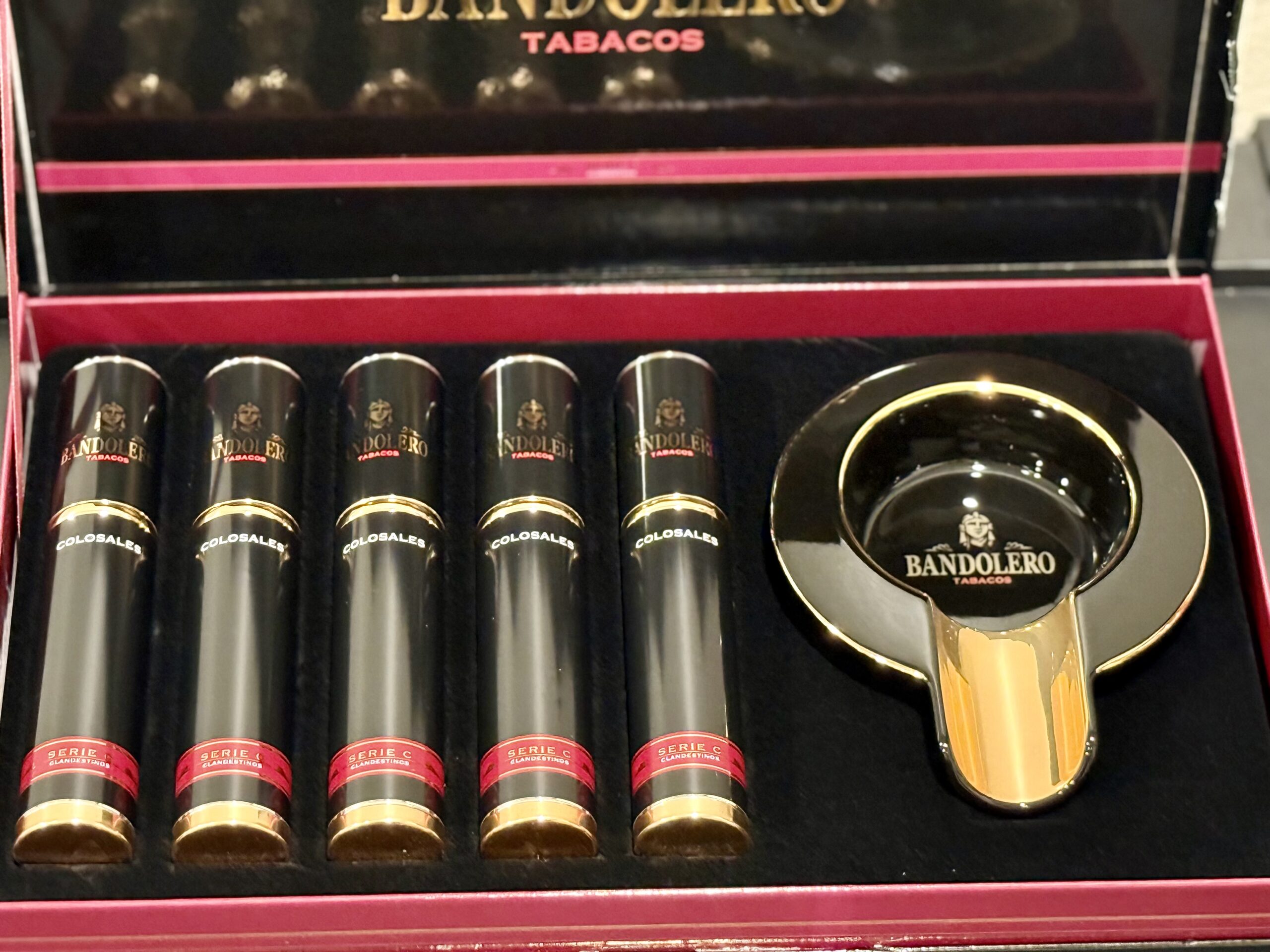 The Bandolero Series C Colosales Limited Edition Ashtray Gift Set spotlights the artistry of Nelson Alfonso and the technical mastery of Selected Tobacco. Debuted at the 2025 PCA Trade Show, this set unites five aged Bandolero Colosales (6 x 54) cigars—each in its own cosmetic-grade aluminum tube for peak post-roll aging—with an exclusive ashtray designed by Alfonso himself. A statement piece for collectors and celebrants, the presentation balances visual opulence with palate sophistication.