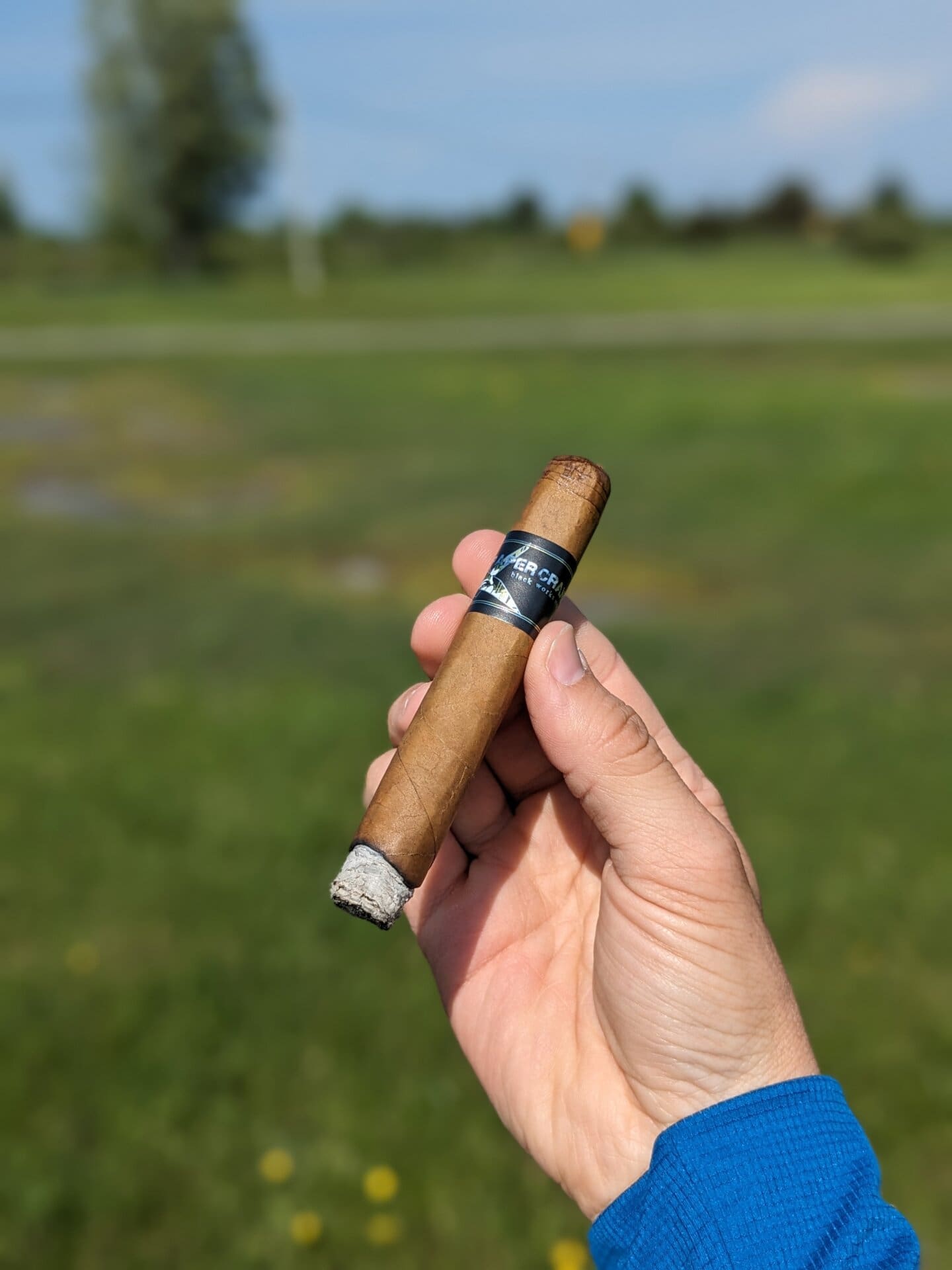 A pleasant surprise from Black Works. The wrapper is impeccable with almost no visible seams on it. After cutting, I was met with a perfect draw. Not too tight, not too open. The cold draw didn’t really bring anything to the party, but on the first light I was met with very potent cedar and spice notes, with some cream on the back of the palate. As the smoke progressed, I was given plenty of cedar, hay, spice, and steam throughout. About midway the cigar started giving me some citrus flavors, which I wasn’t expecting. Definitely a medium-full cigar with the extra spice on the retrohale. I bet these flavors will meld over time into a superior tasting medium strength cigar. It definitely has me coming back for more!