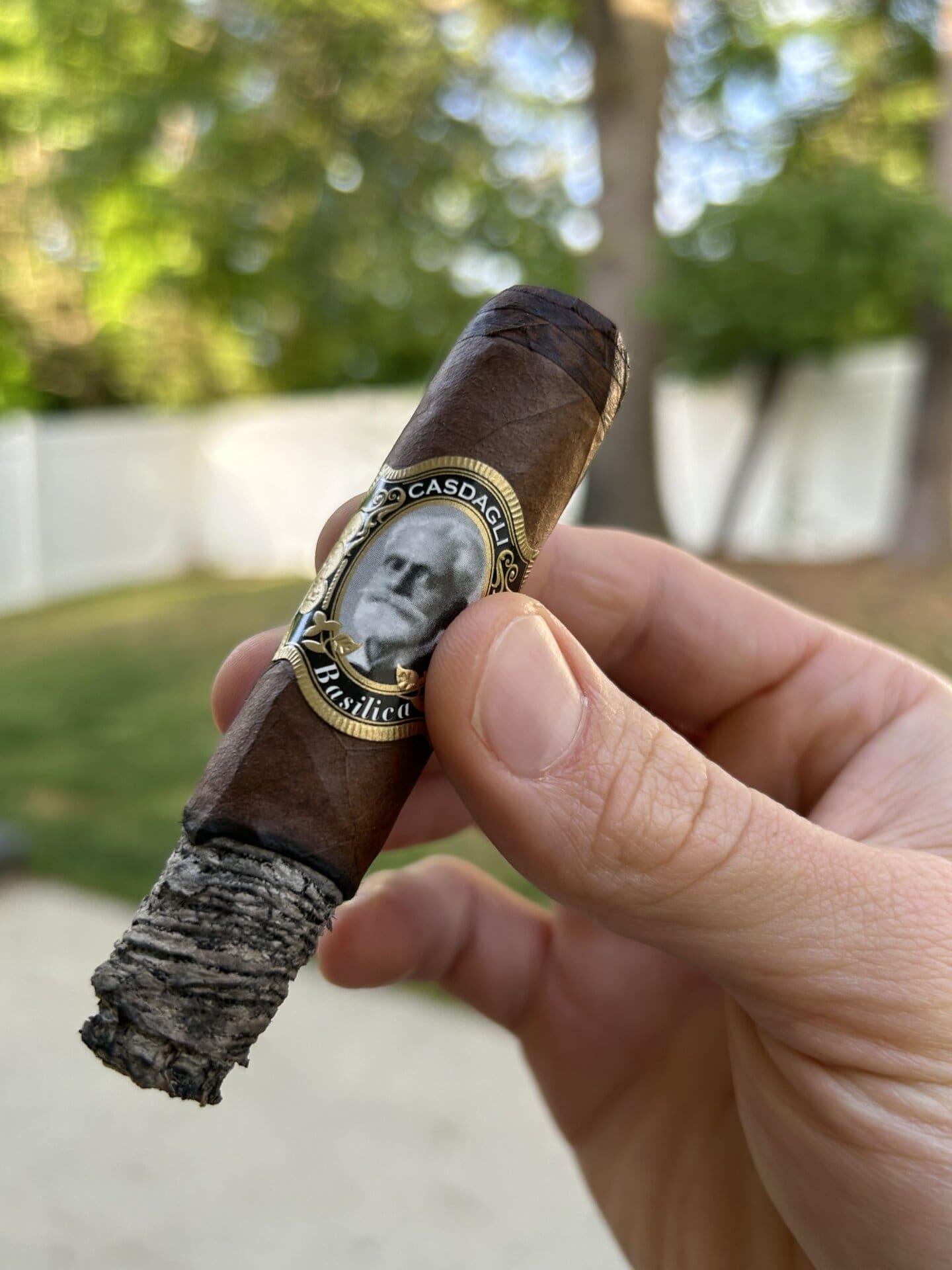 Stacking nickels… tight, tight ash. The Casdagli Basilica C #3 cigar is an absolute delight for cigar enthusiasts. From the moment you hold it in your hand, you can feel the expert craftsmanship and attention to detail that went into its creation. The flawless construction ensures a perfect draw and even burn, allowing you to fully savor the experience.