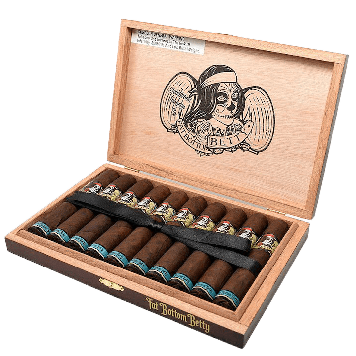 Meet Fat Bottom Betty from Deadwood Tobacco Co.—a bold, dessert-inspired blend created by Drew Estate that delivers an unforgettable sweet-tinged experience through its maduro-wrapped, aromatic construction. Handcrafted in Esteli, Nicaragua, Betty has quickly become a favorite among adventurous cigar fans thanks to its signature blend of infused, chocolatey complexity and welcoming room note.