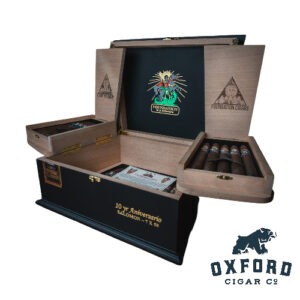 Nicholas Melillo’s most ambitious commemorative release takes physical form in this extraordinary 20-count collector’s chest, a presentation piece that transcends traditional cigar packaging. Drawing inspiration from the celebrated El Güegüense 5 Year Anniversary design, this transformative chest showcases Foundation’s decade-long journey through innovative engineering and artistic mastery, housing twenty of the most significant Salomon perfectos in the company’s distinguished history.