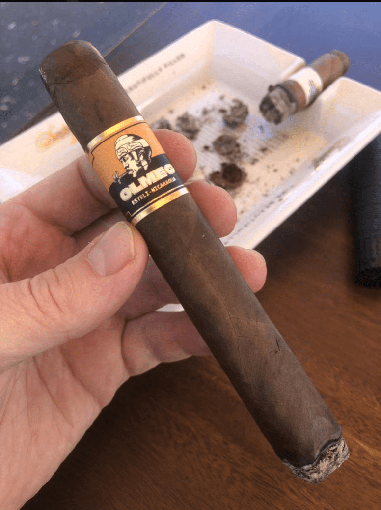 The Olmec Claro is a medium/full-bodied cigar with a complex flavor profile. The first third is dominated by cinnamon and toasted bread, reminiscent of a French dip sandwich. The second third is earthier, with notes of petrichor (the smell of rain on dry soil) and black pepper. The final third is more bitter, with notes of cinnamon, oak, sourdough toast, and red pepper. The cigar is well-constructed and burns evenly, with a long finish.