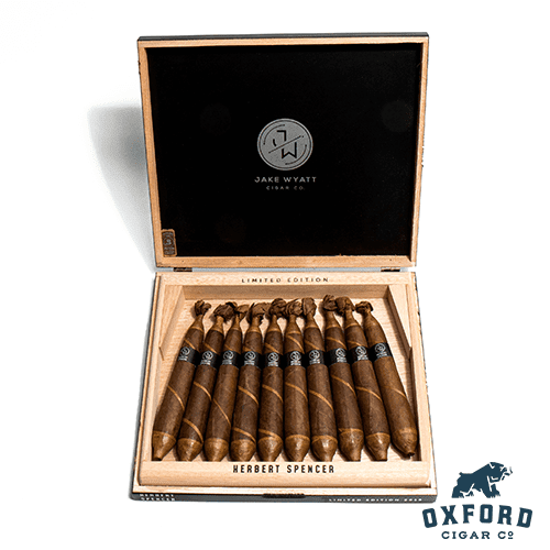 The Herbert Spencer L.E. Figurado by Jake Wyatt brings together the best of Mexican and Dominican tobacco traditions. The aged San Andres Maduro wrapper not only anchors the cigar with chocolate and earthy flavors, but also visually captivates with its dark, oily sheen. Underneath, a Dominican binder and filler lay the foundation for waves of pepper, cedar, and an ever-present earthiness—culminating in a satisfying, spicy retrohale that reveals just how carefully the blend was considered.