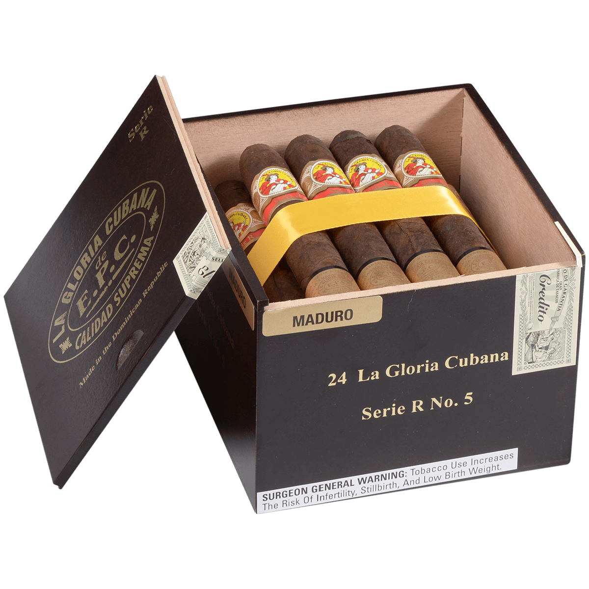 La Gloria Cubana Serie R Maduro is a beloved, full-bodied offering from the renowned El Credito Cigar Factory. Renowned for its robust complexity, deep flavors, and large ring gauges, the Serie R Maduro is handcrafted in the Dominican Republic using an exquisite blend of extra-aged Nicaraguan ligero and Dominican Olor filler tobaccos. These are finished with a hearty, oily Connecticut Broadleaf Maduro wrapper—adding a rich, bold sweetness and delivering a truly powerful experience for discerning smokers.