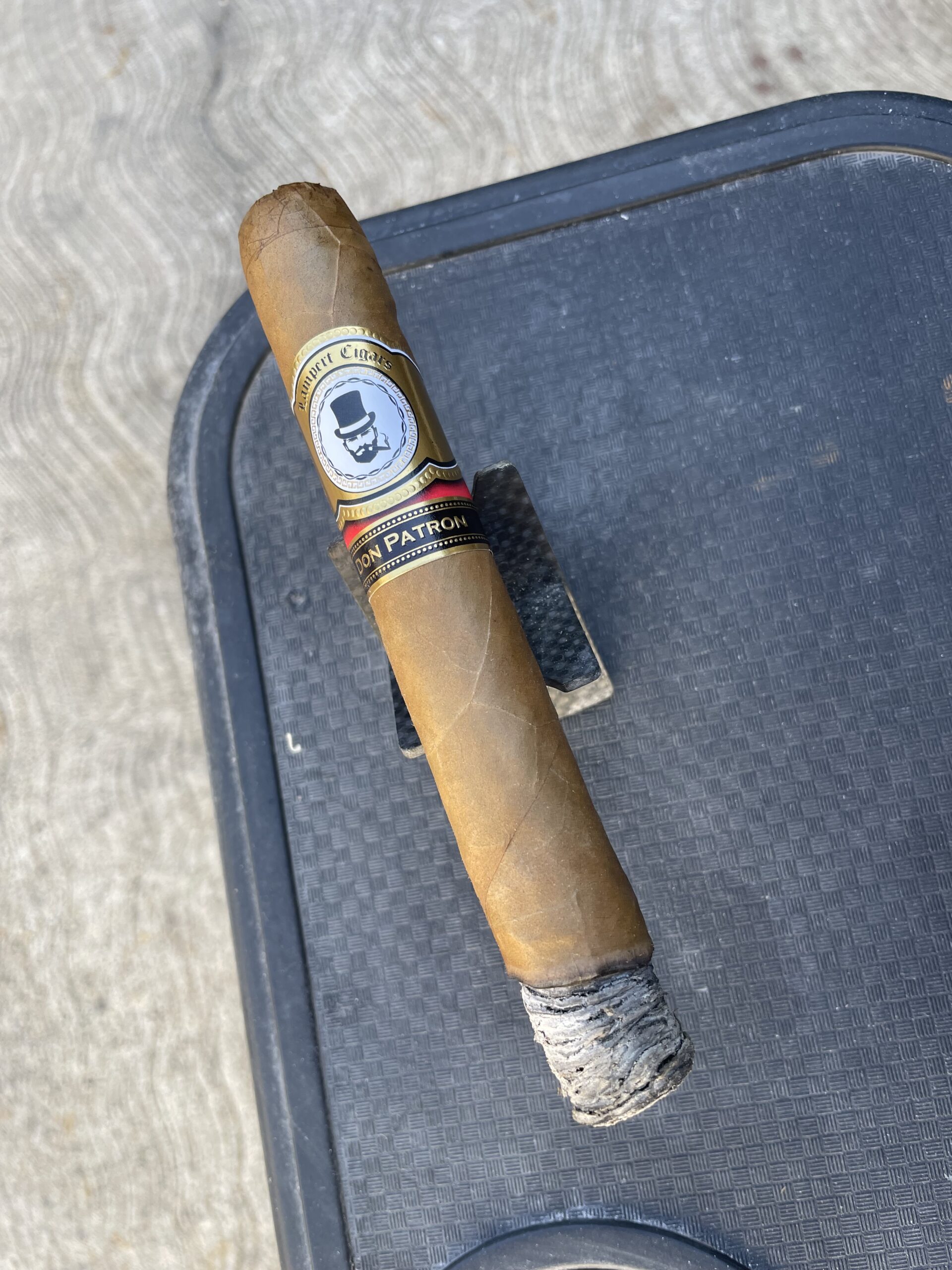 Lampert Oro Don Patron toro 6×52. A very good, mild cigar. The burn was nearly flawless and required only a couple of minor touch up lights to even the burn line. Plenty of smoke and a draw that was initially a little tight, but opened up nicely. It started off with a very mild creamy pepper and baked bread profile and moved onto lightly salted cashews. There were some slight floral notes, but you had to look for them. The profile then moved on to wood, some tannins and, finally at the end, a little leather. Very smooth and enjoyable all the way through. If you’re looking for a mild cigar that still offers some interesting flavors and complexity, give this one a try. Smoking time was about 1 hour and 45 minutes.