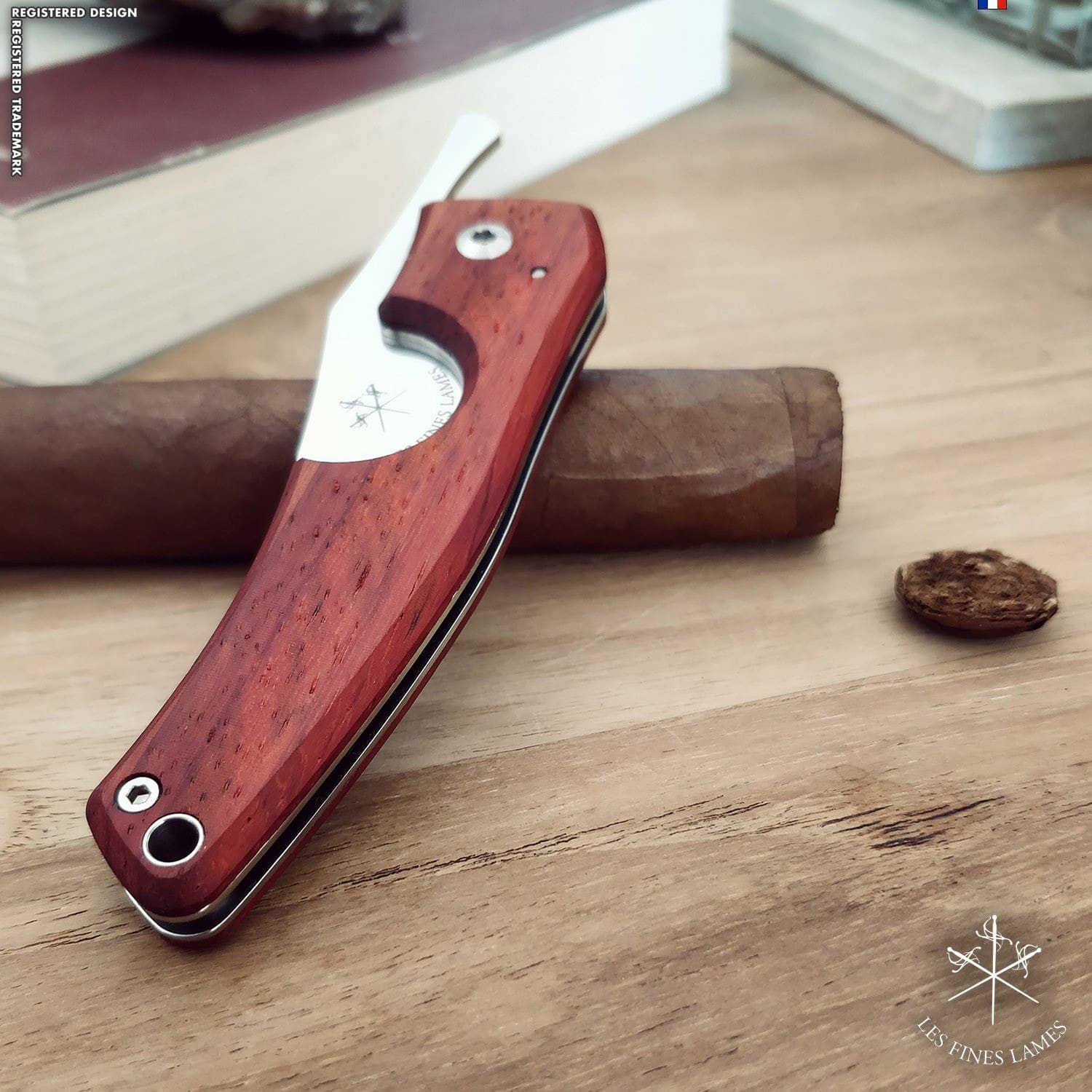 Its knife/cigar cutter dual functionality will make you find your LE PETIT useful in a variety of strategic situations such as opening your mail, slicing lemons for your mojito or, as we often do in France, having an aperitif with a few friends.