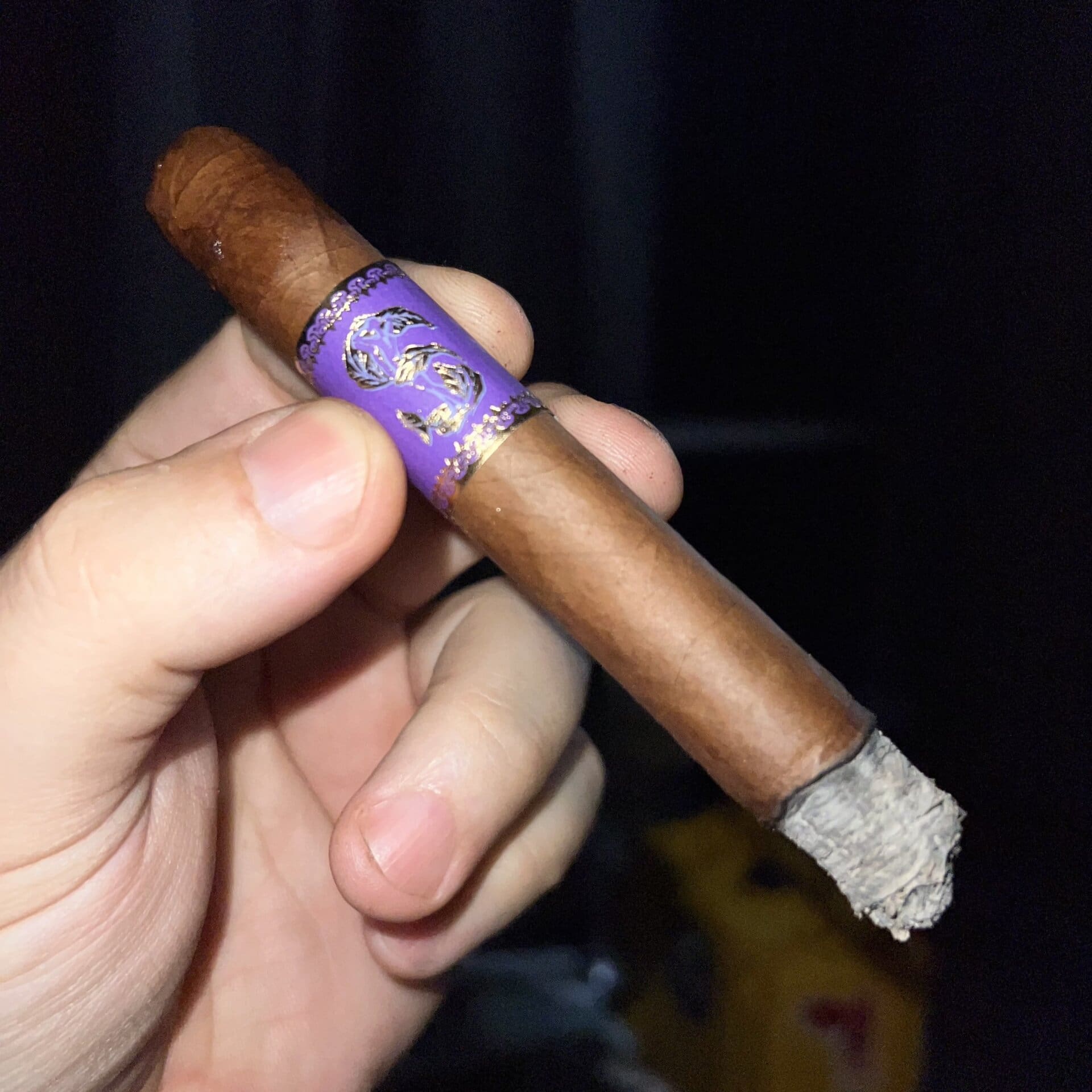 Packaged in boxes of 20, each cigar proudly banded in purple and gold.