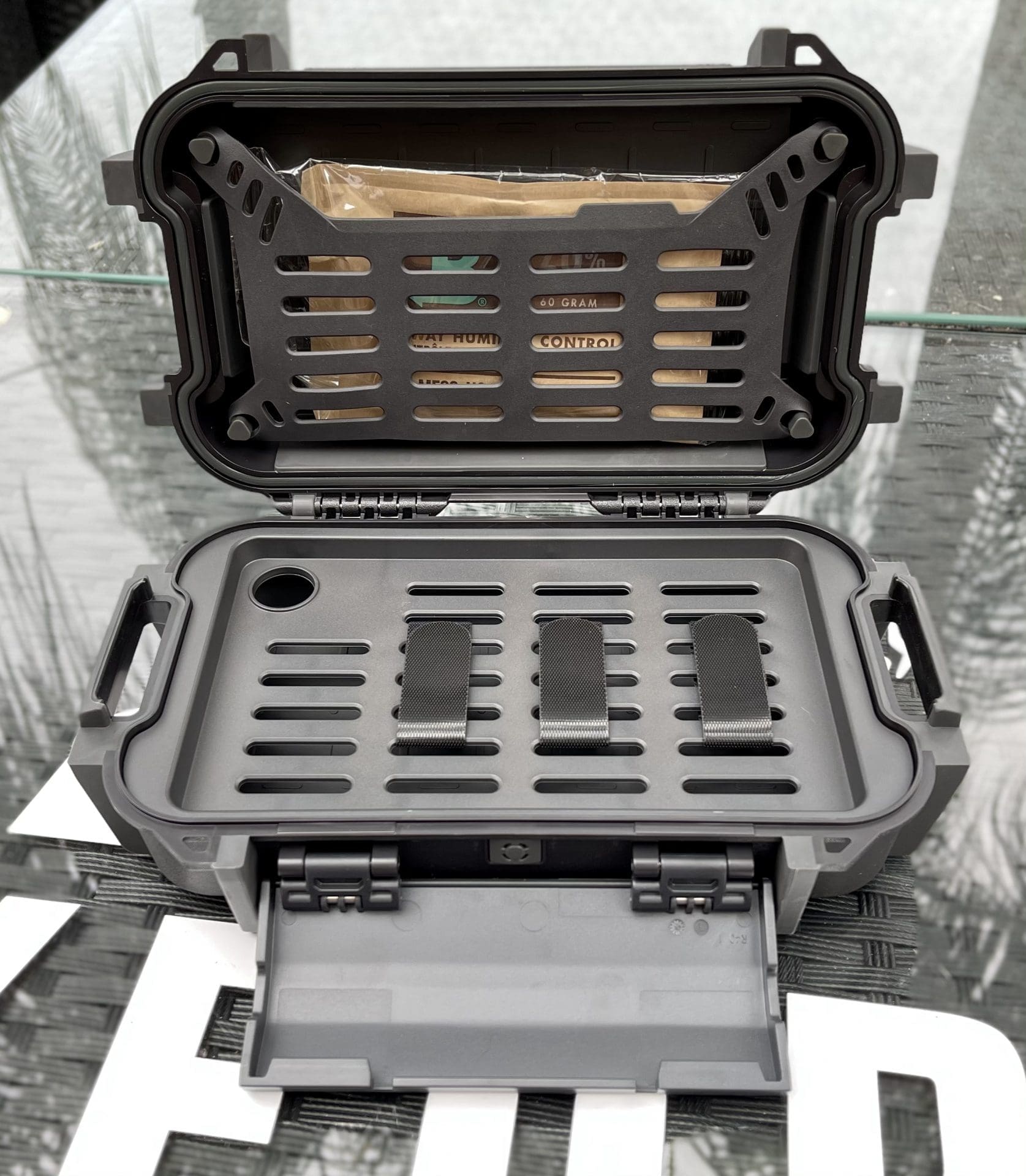 This portable powerhouse comes equipped with a Boveda 69% 60-gram humidification pack for perfect moisture control right from the start. Its dual pivot hinge latch, abrasion- and impact-proof build, and easy-access layout ensure your prized cigars survive any journey. Customers rave about its indestructibility—even testing it by burying, dunking, and dropping with zero compromise to cigar quality.