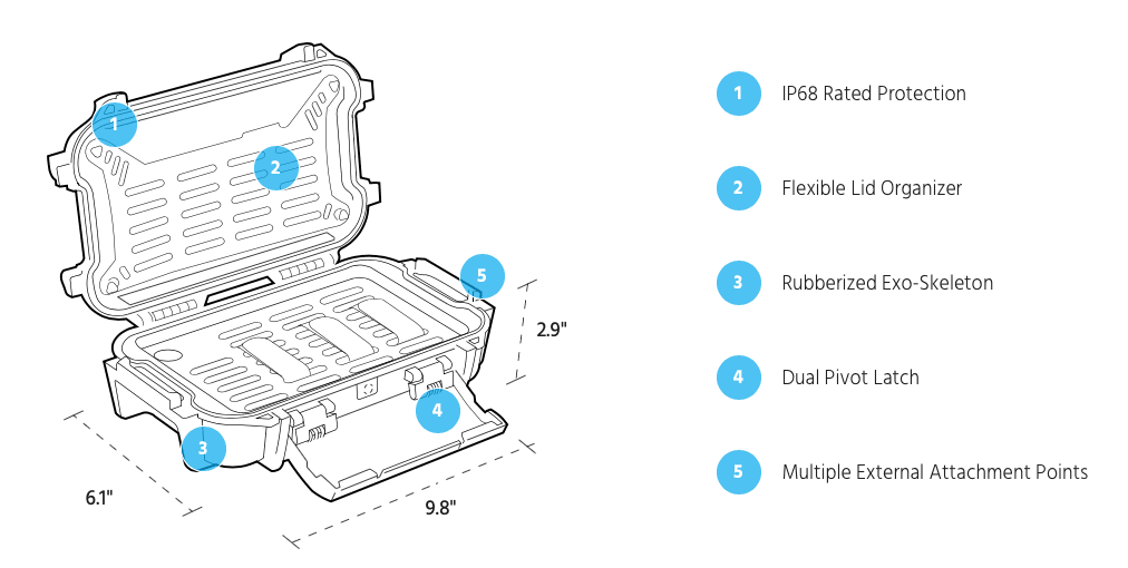 The case is abrasion- and impact-proof with rubberized bumpers and a dual pivot latch, tested under real-world extremes for peace of mind.