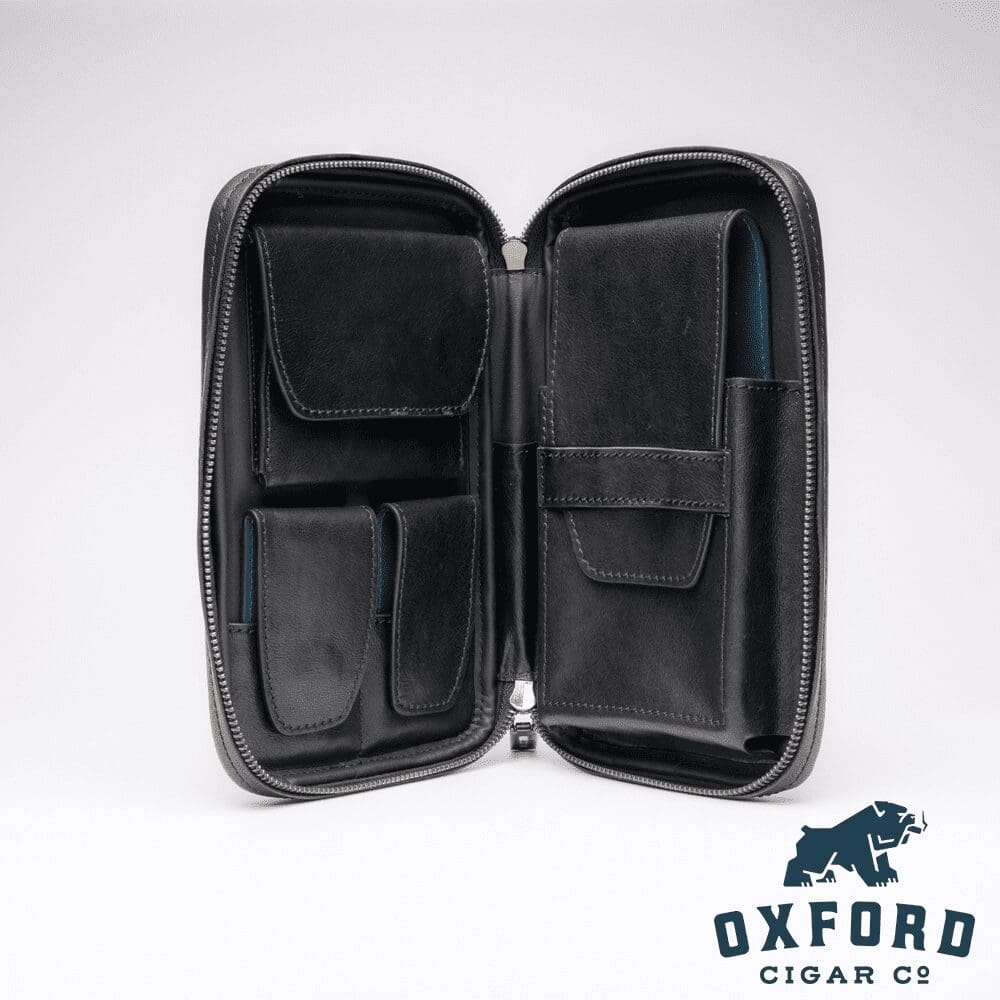 The thoughtful design ensures your cigars remain properly protected while providing organized storage for essential accessories. Whether carrying your favorite Peter James Iconic lighter, precision cutter, or additional tools, everything has its designated place within this meticulously crafted case. The spacious interior accommodates cigars up to Gordo ring gauge while maintaining a compact profile perfect for daily carry.