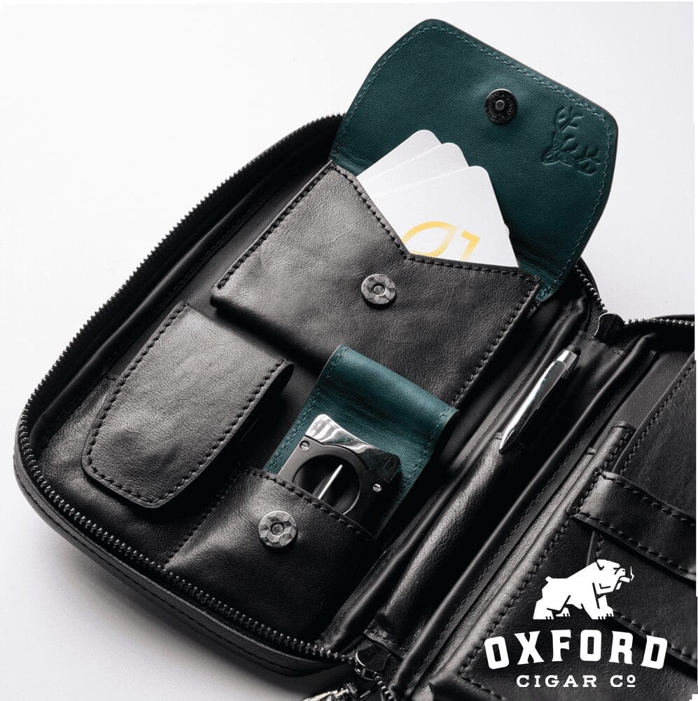 The Peter James Legacy Cigar Case Licorice embodies sophisticated elegance with its deep, rich black colorway that exudes timeless style. This premium everyday carry organizer represents Peter James’ latest evolution in cigar case design, maintaining their renowned attention to detail while adding distinctive flair through subtle color accents. The classic licorice exterior creates a sleek, professional appearance that complements any setting, from business meetings to leisurely smoking sessions.