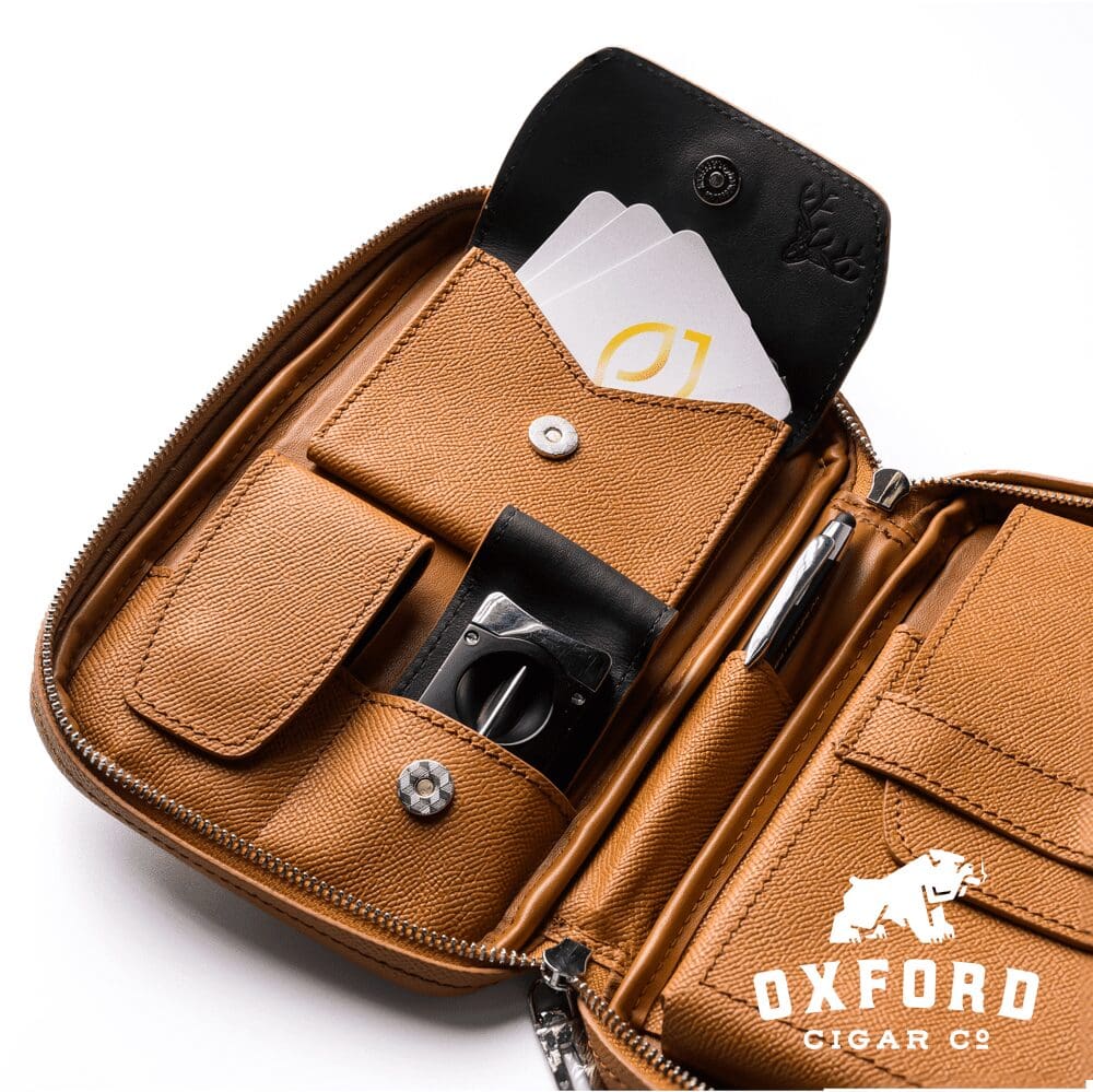Smartly designed (insofar as appearance and practicality), this is exactly what I was looking for – can hold a few cards, cigar accessories, five cigars, and the quality of the tanned hide is evident. No longer do I have to depend on tubos and pockets if I want to take cigars out of my home. Yes, it’s a lot of money – but yes, it is absolutely worth it.