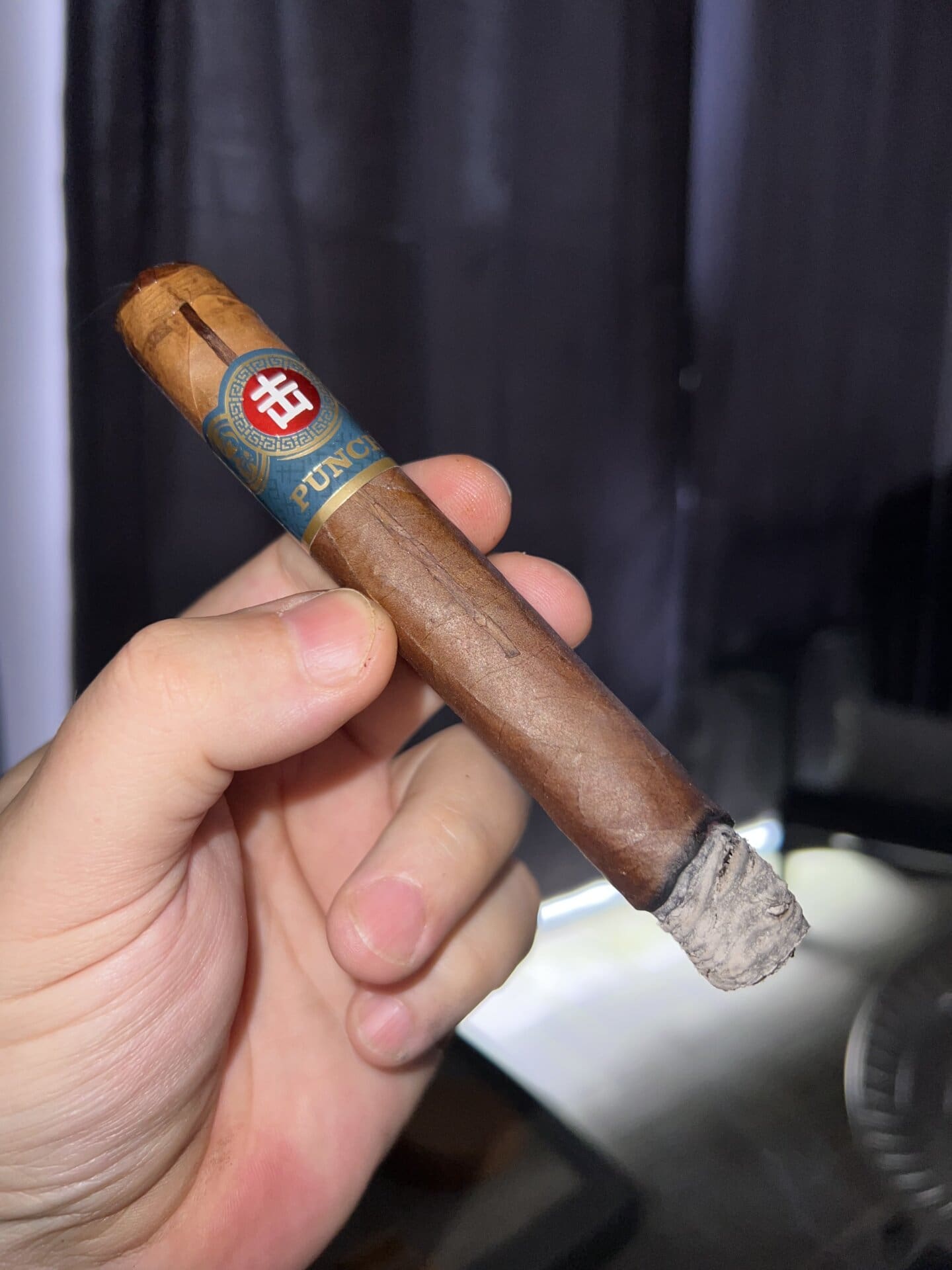 I haven’t smoked a ton of punch cigars. They always seem to be pretty decent smokes for the price so I gave this a shot. Right away I’m getting woody notes….. toasted cedar. Also getting black coffee and some earth. I didn’t get a ton of transitions out of this stick. It burned pretty good and the draw was solid. I felt like this was a decent stick given the price. I feel the slight harshness I got in the second third could be mellowed a bit from some aging. Overall pretty decent offering from Punch.