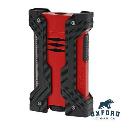 Introducing the S.T. Dupont Defi Xxtreme Lighter in bold black and red—a modern marvel made for cigar lovers and adventure-seekers alike. Engineered for peak performance in the harshest elements, this lighter combines forceful double-torch flames, a shock-proof grip, and cutting-edge safety features in a striking, ergonomic design that stands out in any collection.